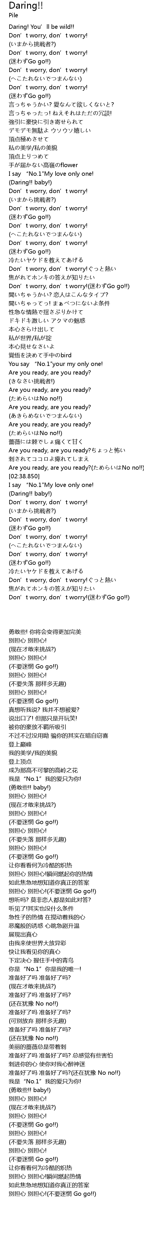 | [00:01.410] | Daring! You' ll be wild!! |