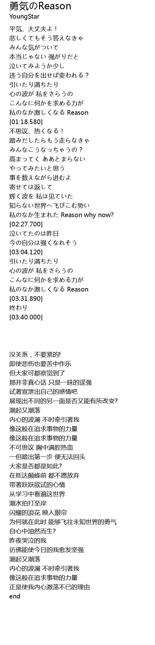 yong qi Reason Lyrics