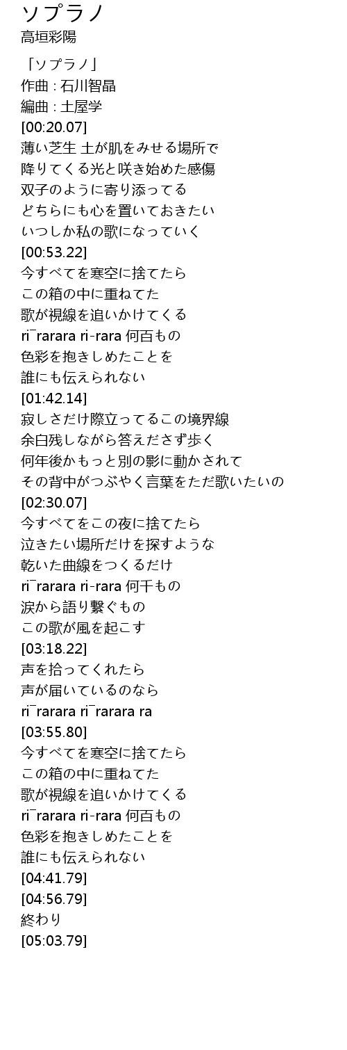 | [00:00.07] | 「ソプラノ」 |