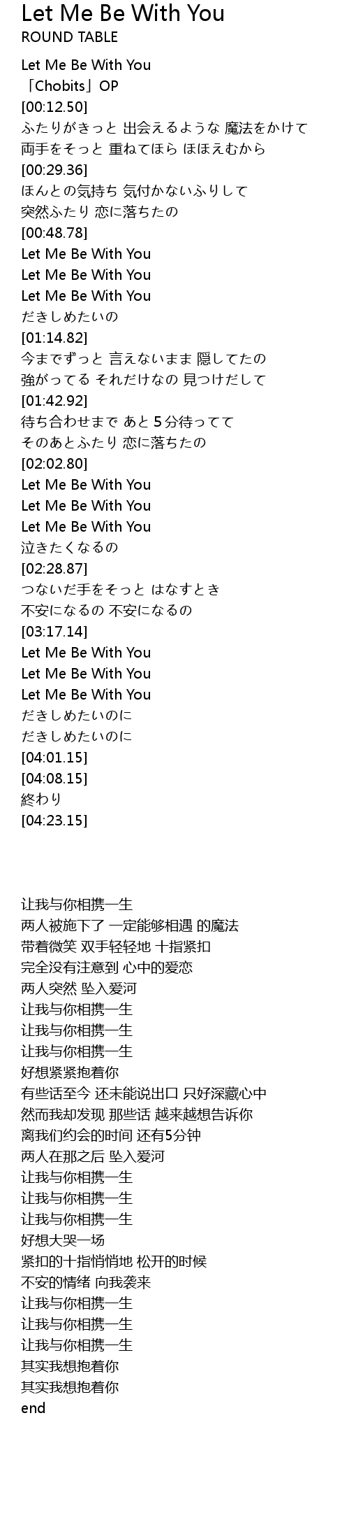| [02:19.45] | Let Me Be With You |