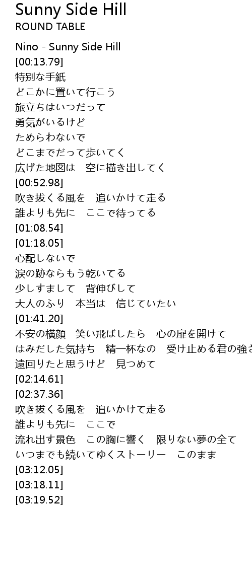 | [00:01.00] | Nino Sunny Side Hill |