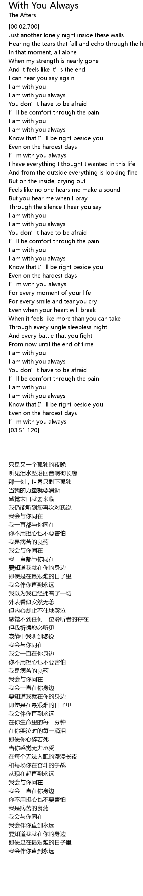 | [03:48.810] | I' m with you always |