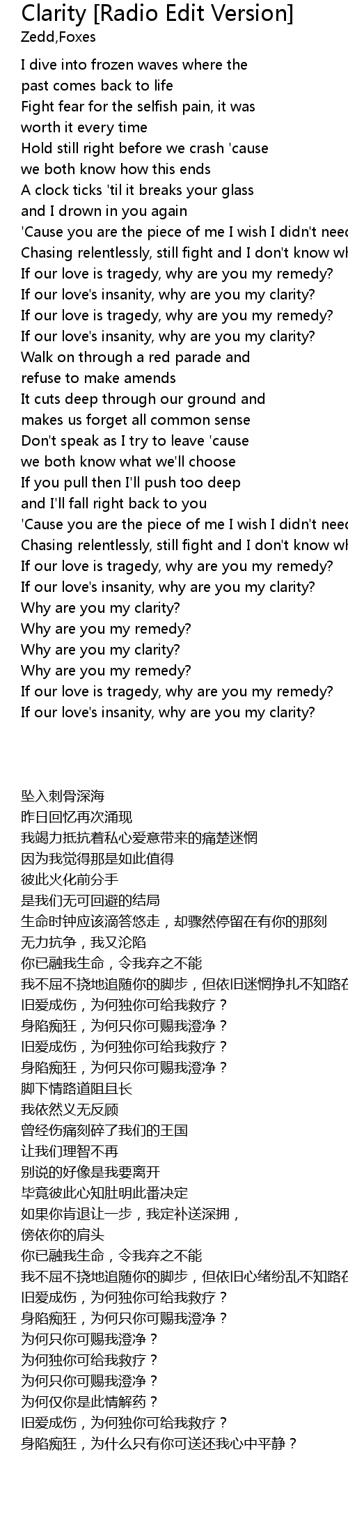 | [03:44.73] | Why are you my clarity? |
