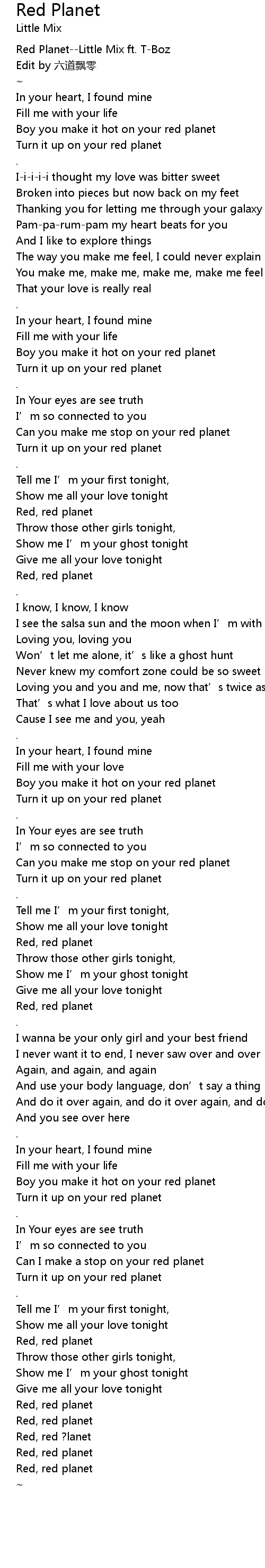 | [00:00.00] | Red Planet--Little Mix ft. T-Boz |