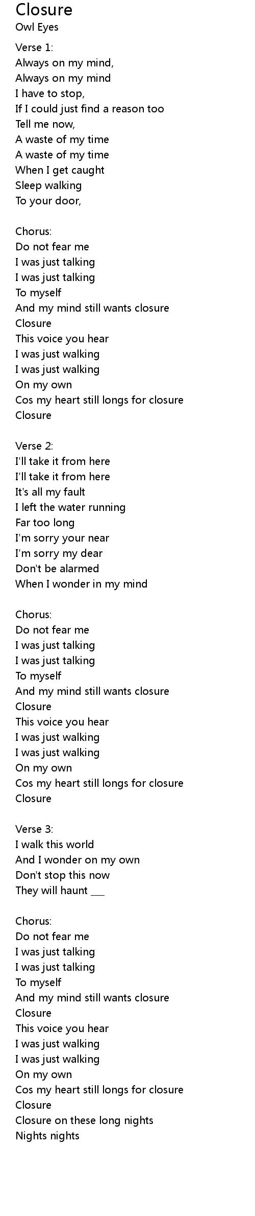 | Cos my heart still longs for closure | |