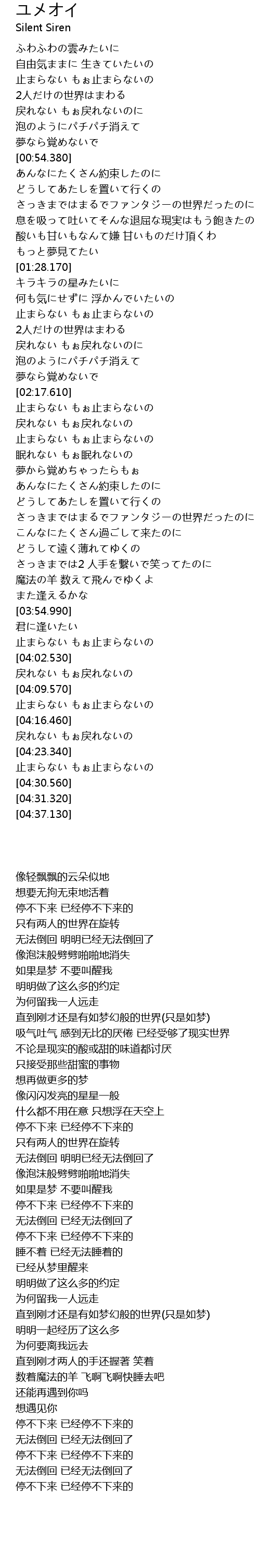 | [02:54.310] | 戻れない もぉ戻れないの |