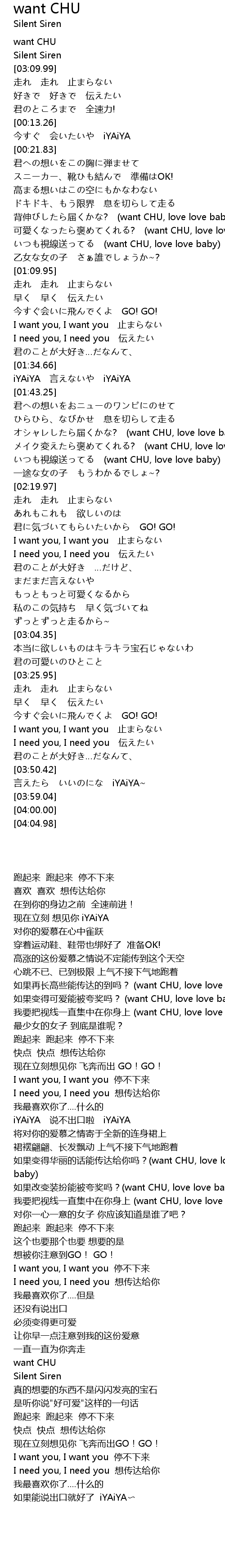| [00:47.09] | bei shen jie? want CHU, love love baby |
