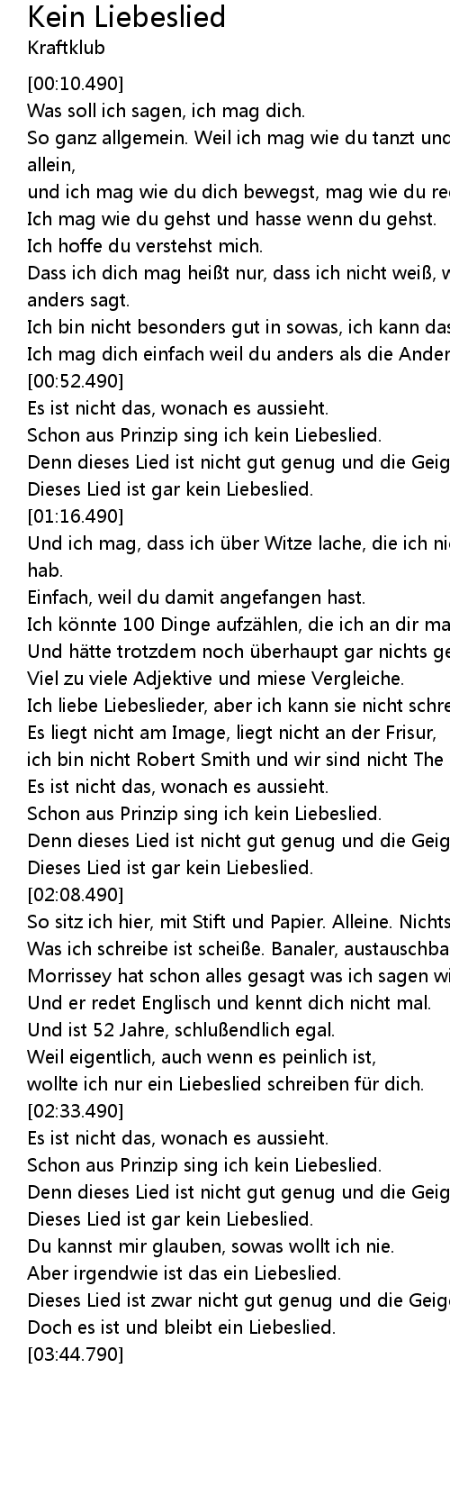 | [01:11.490] | Dieses Lied ist gar kein Liebeslied. |