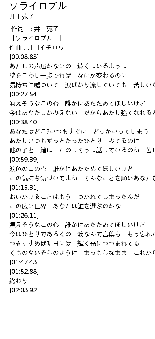 | [00:00.00] | 作词 : ∶井上苑子 |