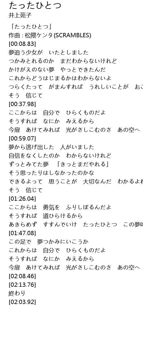 | [00:00.83] | 「たったひとつ」 |