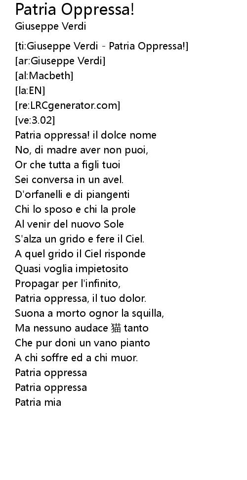 | [ti:Giuseppe Verdi - Patria Oppressa!] | |