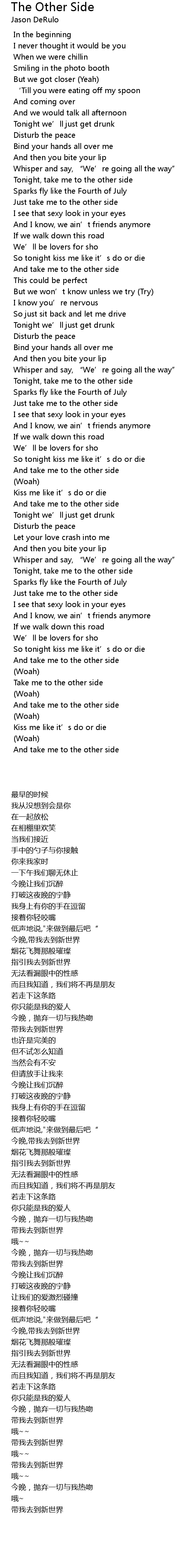 | [00:48.500] | Tonight, take me to the other side |