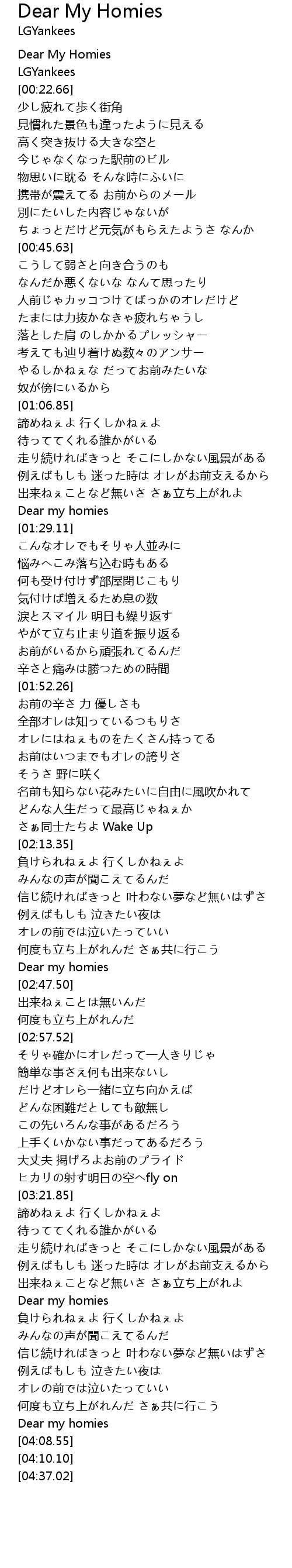 | [03:41.74] | Dear my homies |