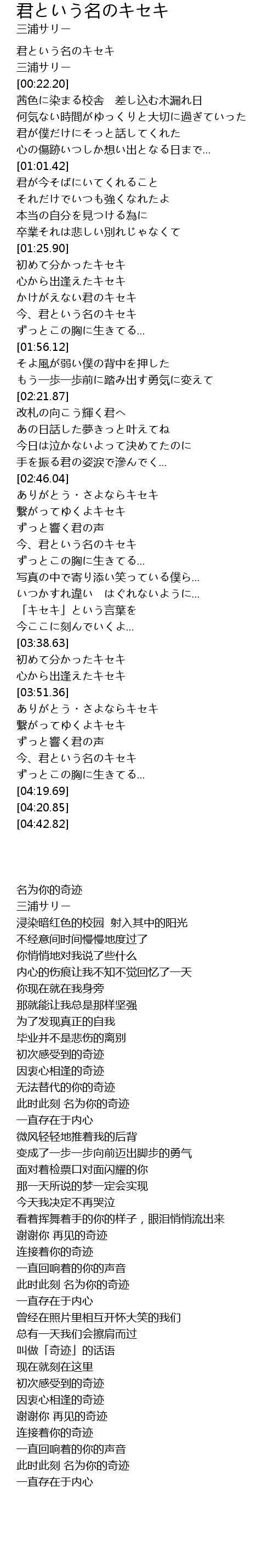 | [03:03.02] | 今、君という名のキセキ |