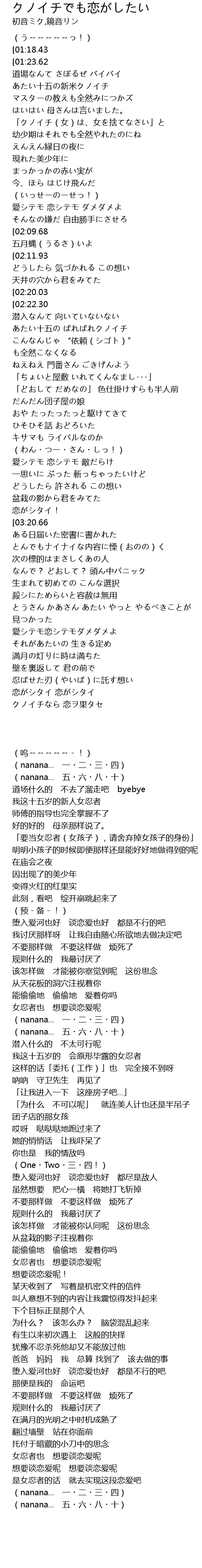 | [01:15.48][02:22.30][03:41.43] | クノイチでも 恋がシタイ |