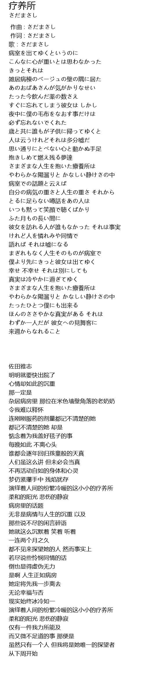 | Song | 疗养所 |