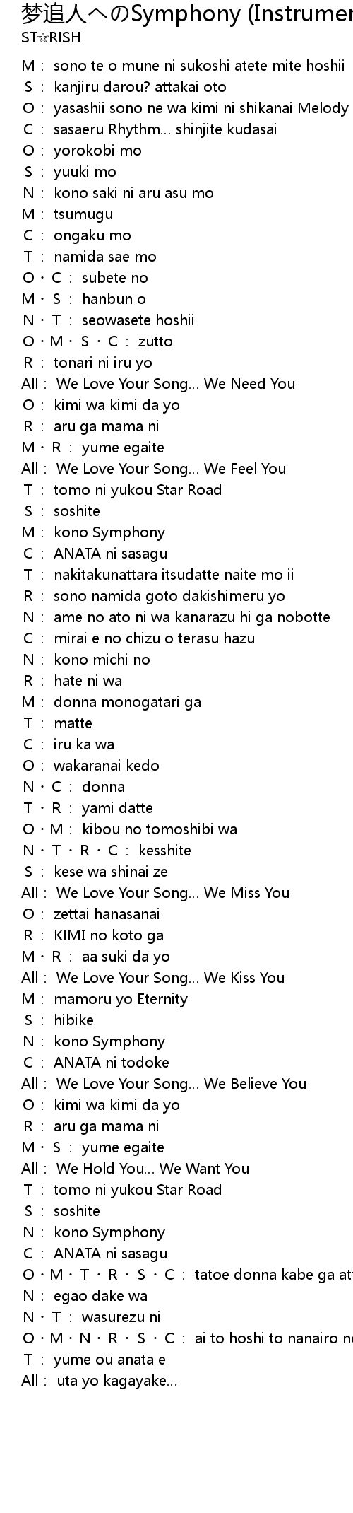 | : yasashii sono ne wa kimi ni shikanai Melody o | |