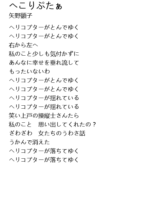 | [00:58.200] | ヘリコプターがとんでゆく |
