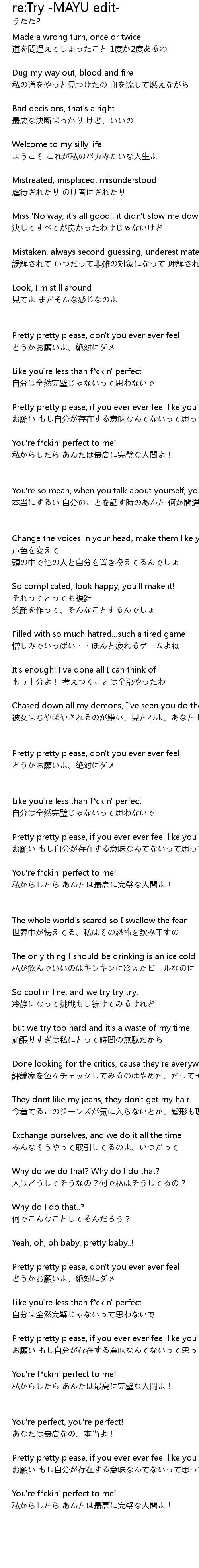 | Like you're less than f*ckin' perfect | |