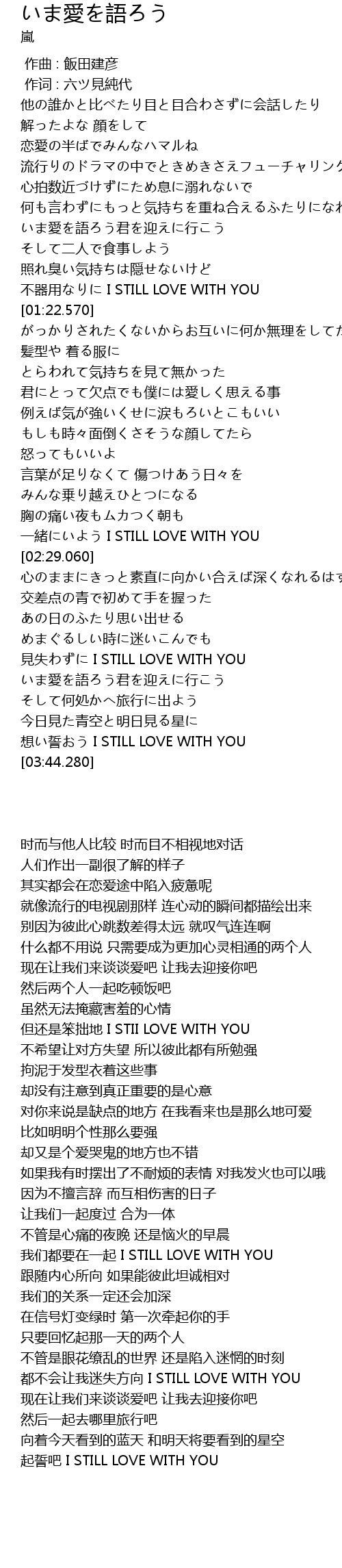 | [03:35.370] | 想い誓おう I STILL LOVE WITH YOU |