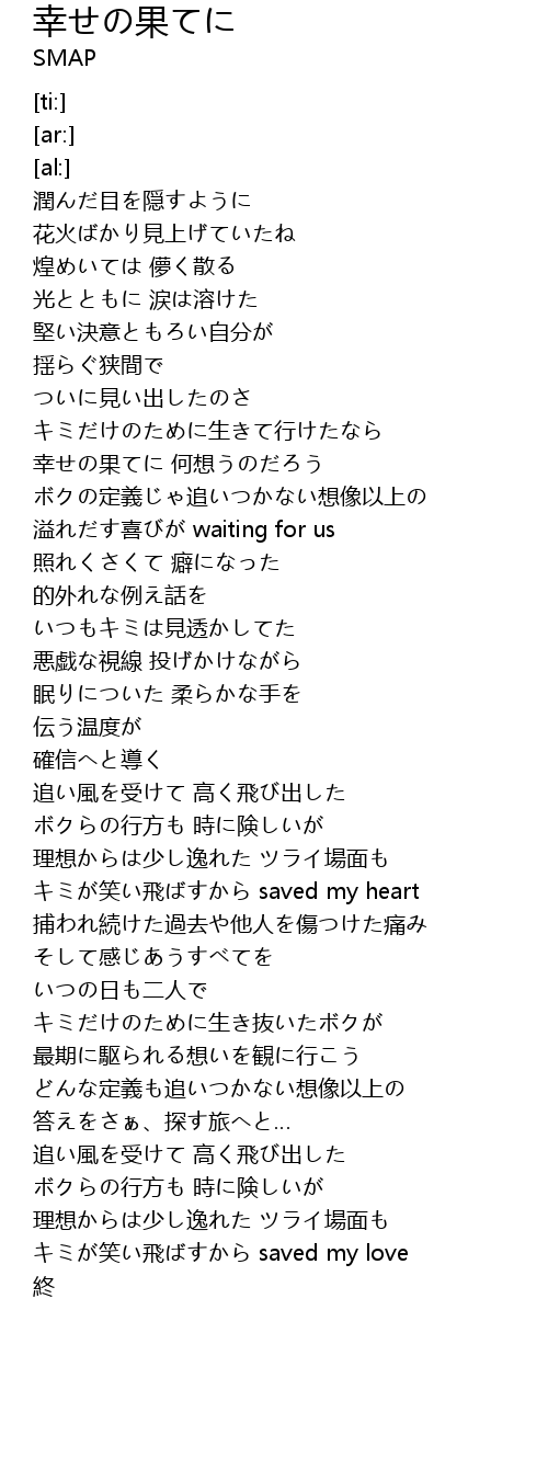 | [01:12.42] | 幸せの果てに 何想うのだろう |