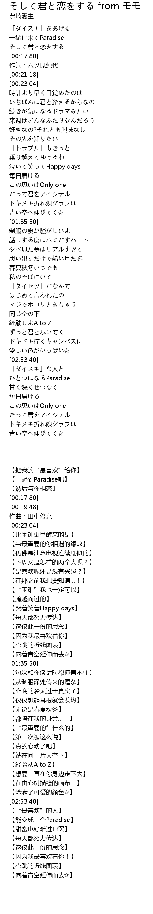 | [00:00.00] | 「ダイスキ」をあげる |
