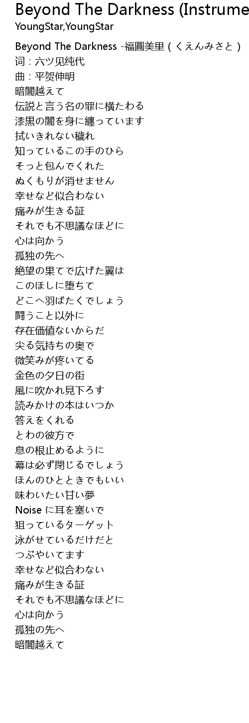 | [00:00.00] | Beyond The Darkness -福圓美里(くえんみさと) |