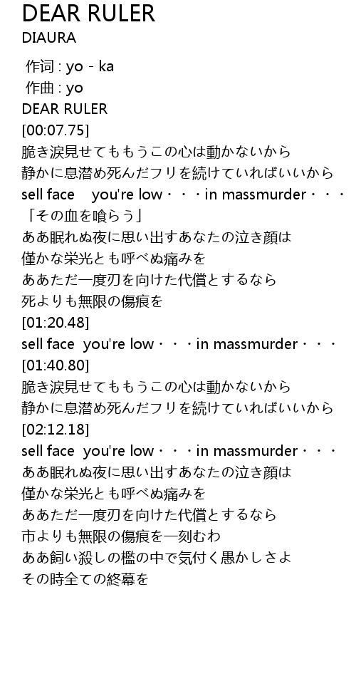 | [00:35.06] | sell face you're low・・・in massmurder・・・ |