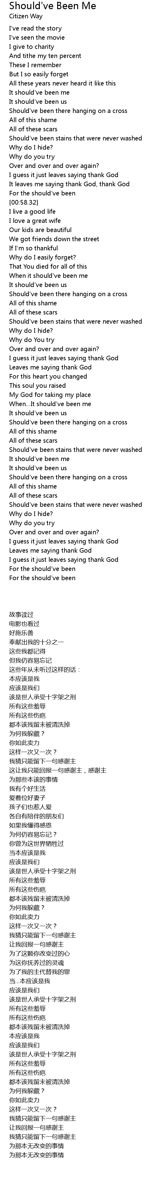 | [00:35.20] | Should've been there hanging on a cross |