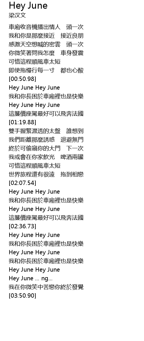 | [00:58.74] | wǒ hé nǐ zhǎng kùn yú chē xiāng lǐ yě shì kuài lè |