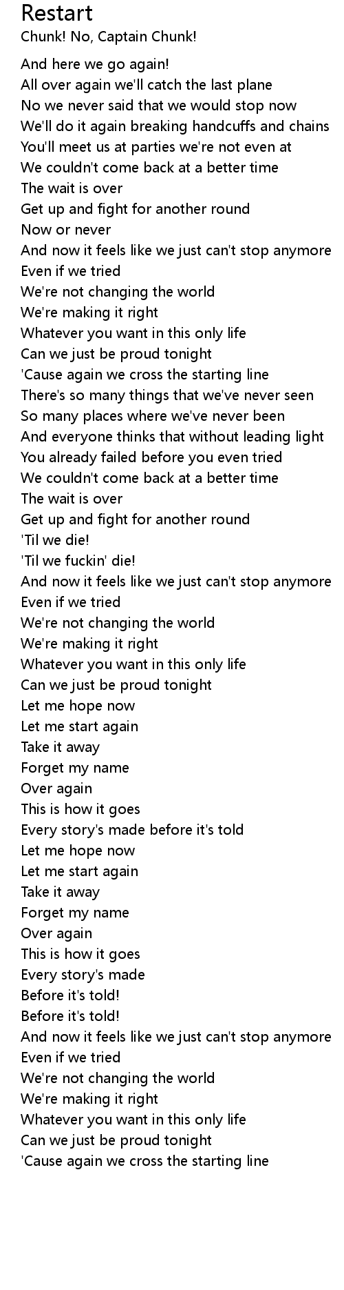 Restart Lyrics
