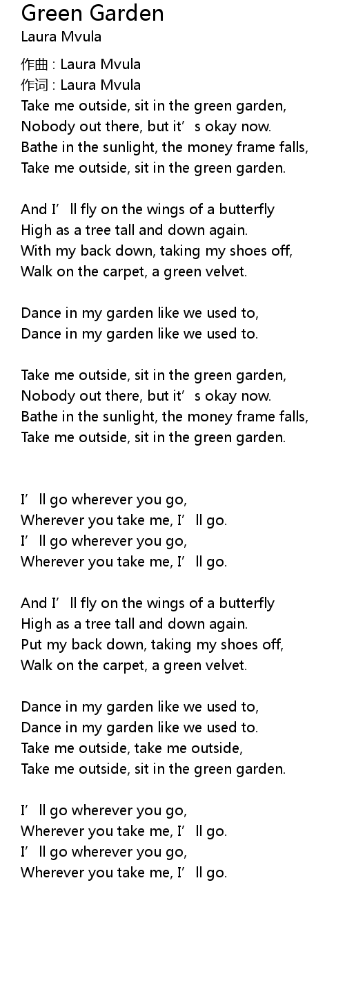 | Take me outside, sit in the green garden, | |