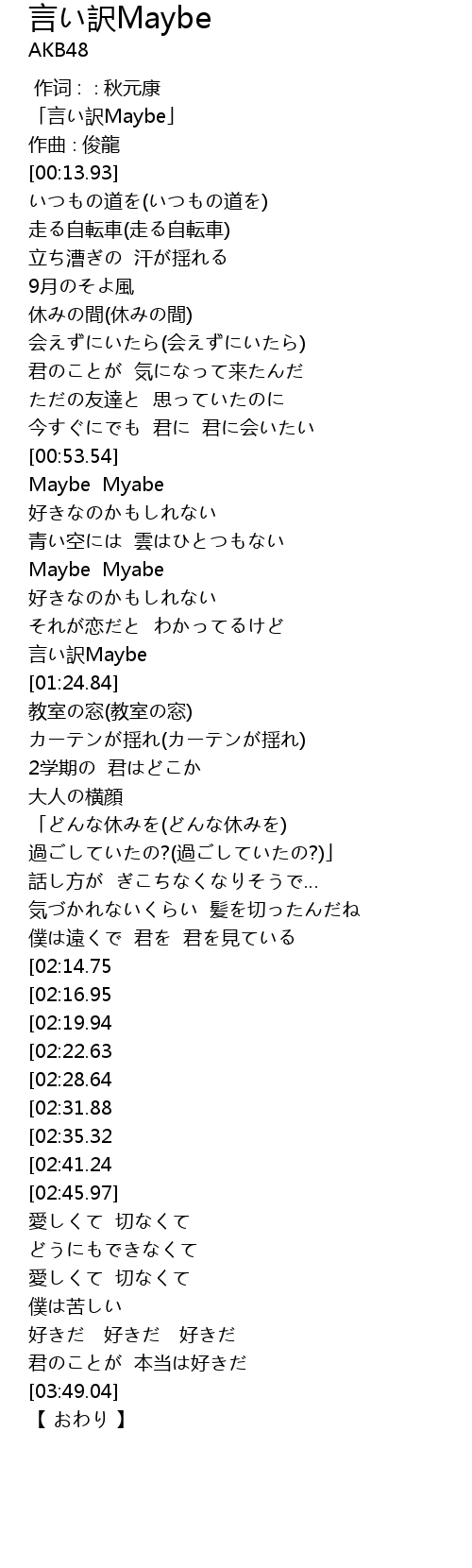 | [03:19.76][02:16.95] | Maybe Myabe |