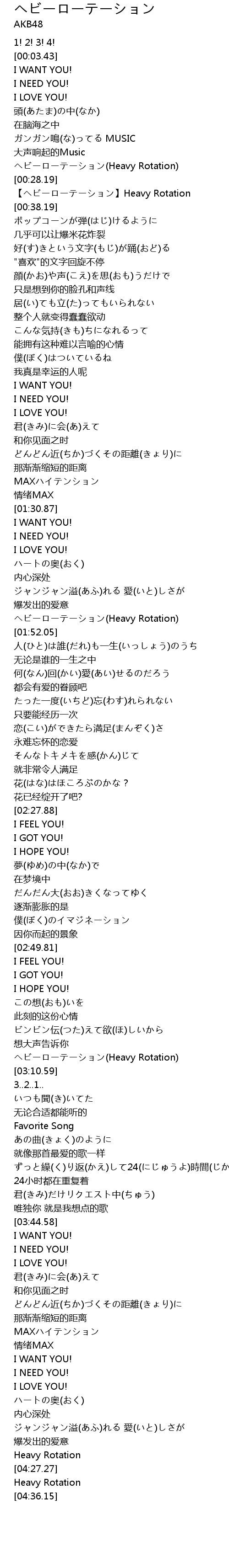 | [03:07.30] | ヘビーローテーション(Heavy Rotation) |