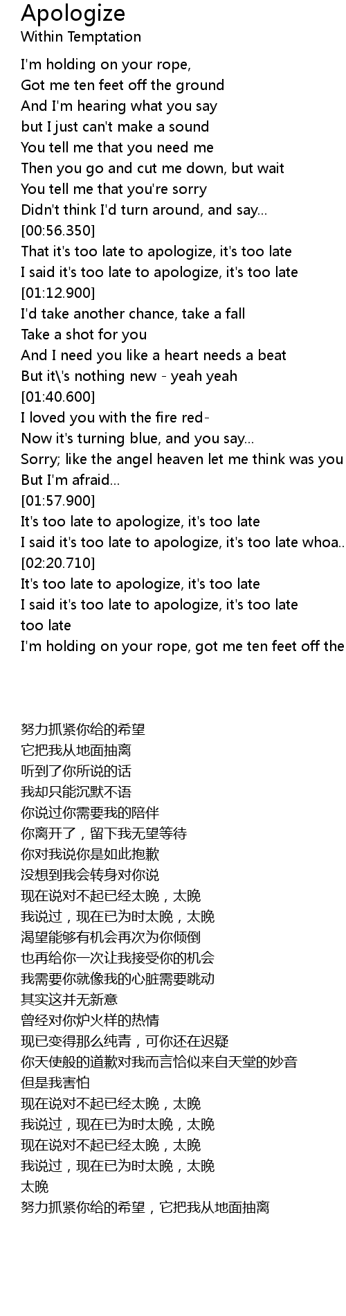 It's too late to apologize, it's too late |