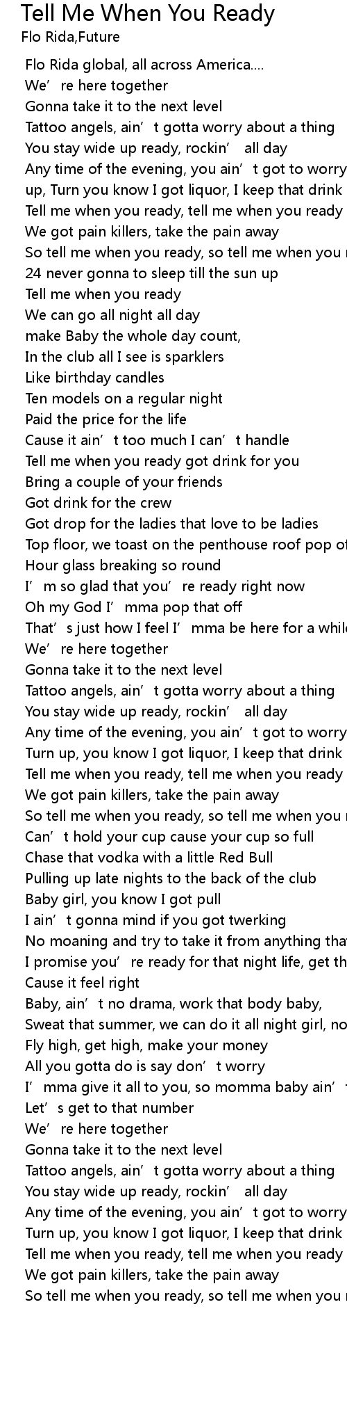 | [00:40.860] | So tell me when you ready, so tell me when you ready |