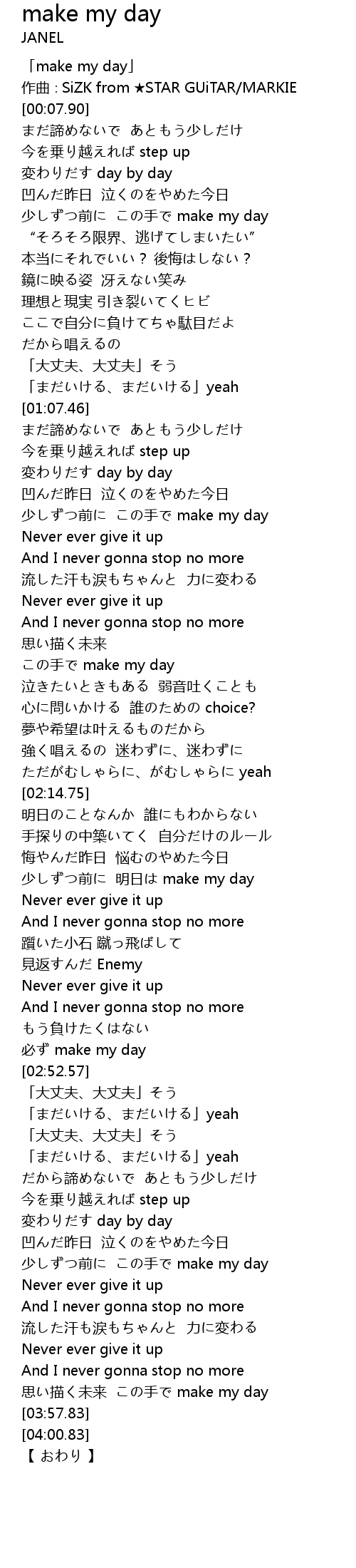 | [03:52.45] | sī miáo wèi lái shǒu make my day |