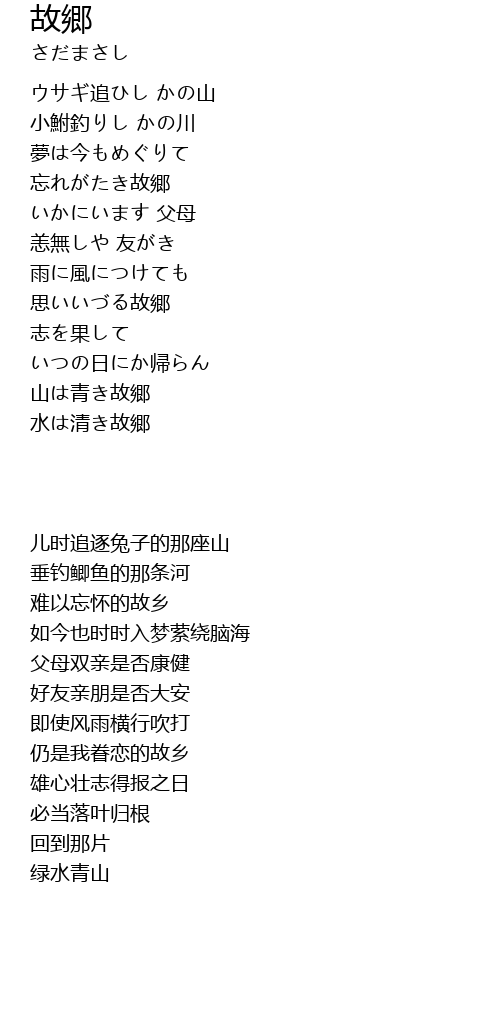 ウサギ追ひし かの山 |