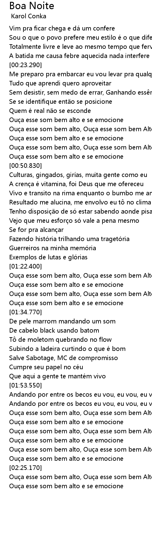 | [00:44.830] | Ouça esse som bem alto, Ouça esse som bem Alto |