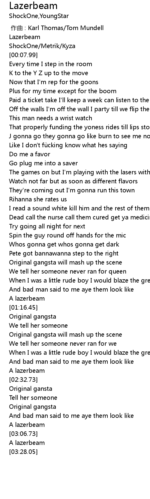 | [03:05.07] | A lazerbeam |