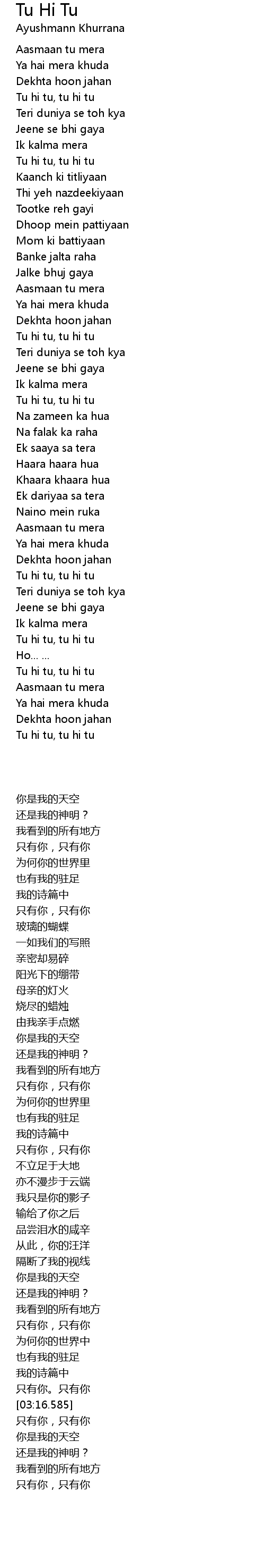Tu hi tu, tu hi tu |