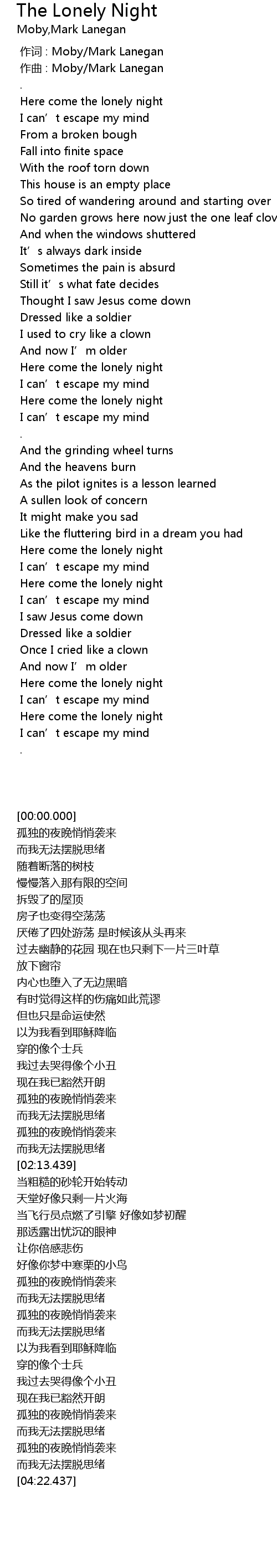 | [00:00.000] | 作词 : Moby/Mark Lanegan |