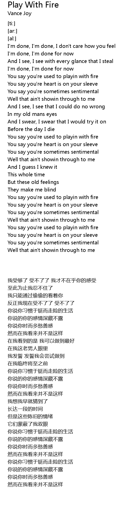 You say you're used to playin with fire |