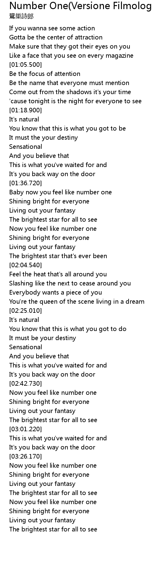 Baby now you feel like number one |
