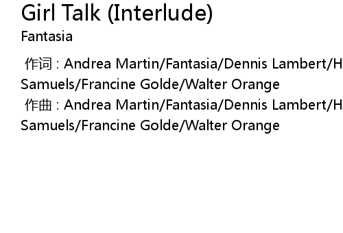 | [00:00.000] | 作曲 : Andrea Martin/Fantasia/Dennis Lambert/Harmony Samuels/Francine Golde/Walter Orange |