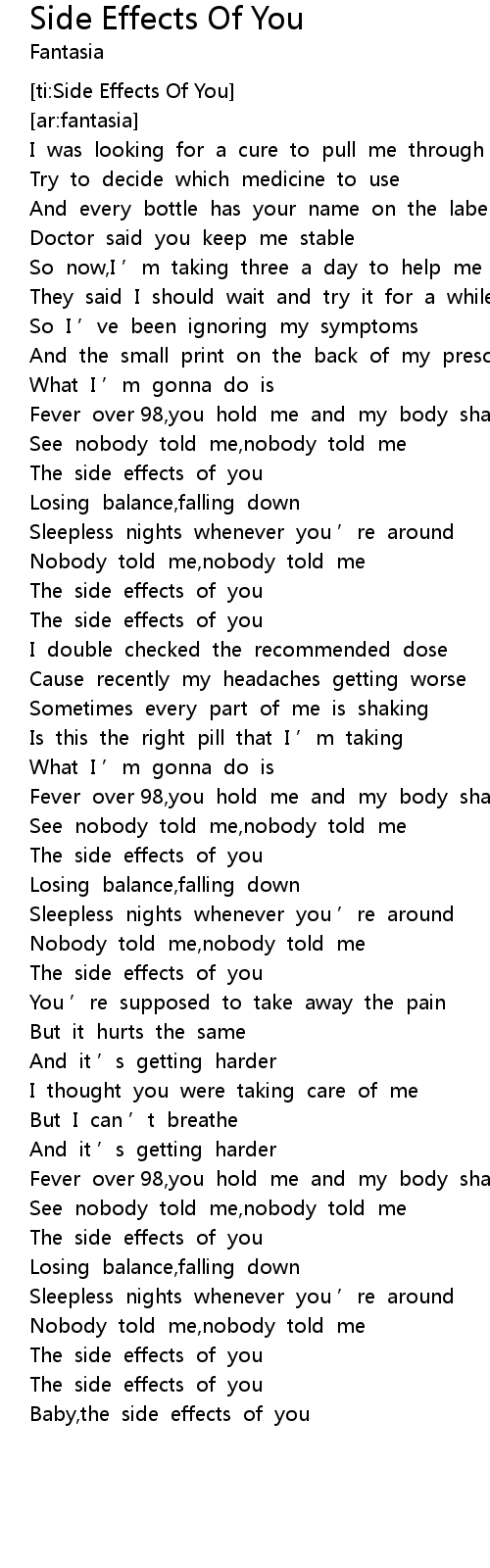 | [00:36.805] | So I ' ve been ignoring my symptoms |