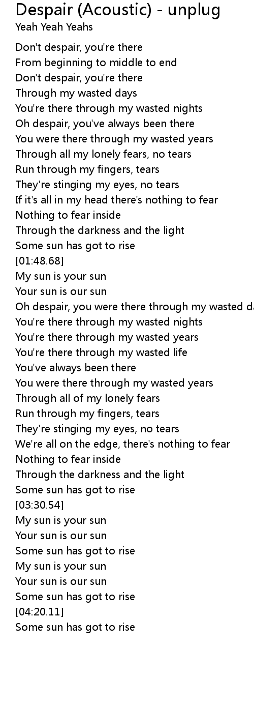 Oh despair, you've always been there |