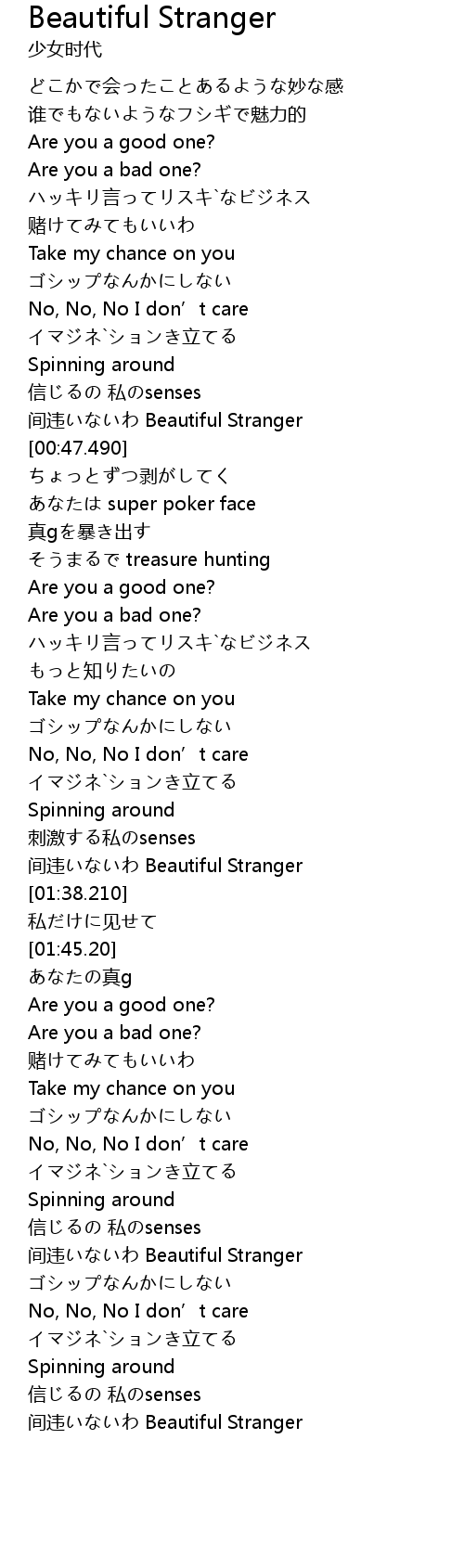 | [00:44.690] | 间违いないわ Beautiful Stranger |