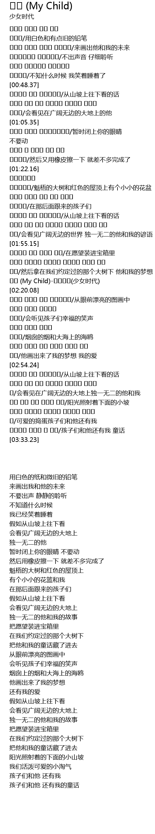 | [02:11.01] | My Child shào nǚ shí dài |