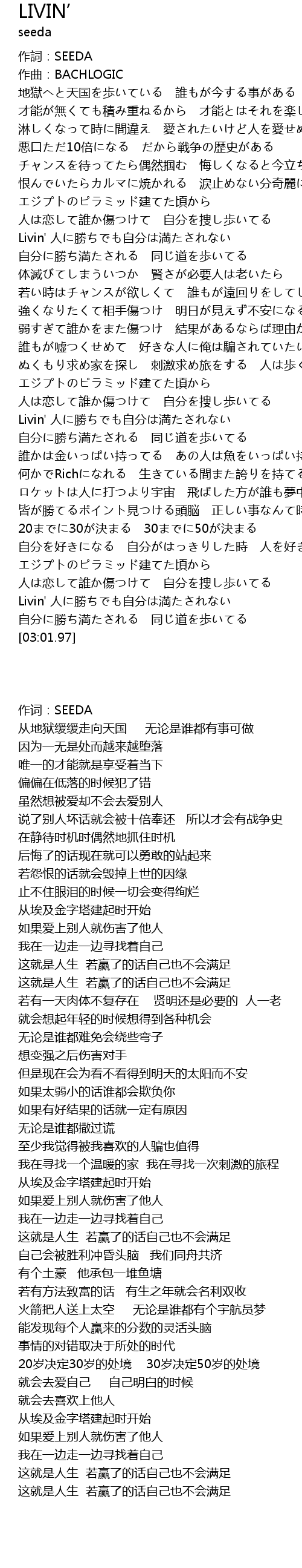 | [00:00.72] | 作詞:SEEDA |
